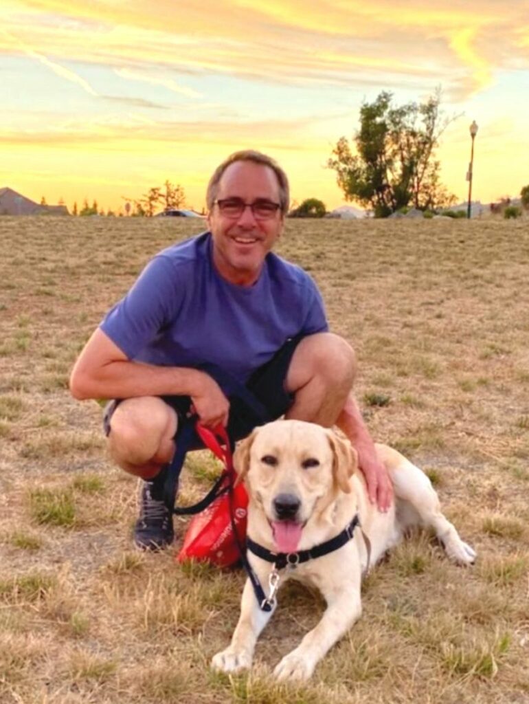 Howard Lasker on the left and Michael Doucette on the right with their respective four-legged companions.